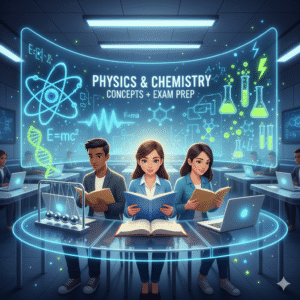 This course helps students understand physics and chemistry concepts in a simple and practical way while preparing for exams. It covers topics like motion, energy, atomic structure, bonding, chemical reactions, electricity, waves, and modern physics with detailed conceptual explanations. Alongside, students will learn smart exam techniques, numerica